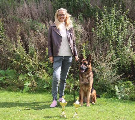 Vi har altid haft et specielt bånd til hende, så da vi fik muligheden for, at få hende på halvpart 2 år gammel, var vi ikke et minut i tvivl. Hun kom direkte hjem fra Tyskland med prøve og kåring og blot 1,5 måned senere stillede hun i brugsklasse tæver på HAS og blev en flot F3.
